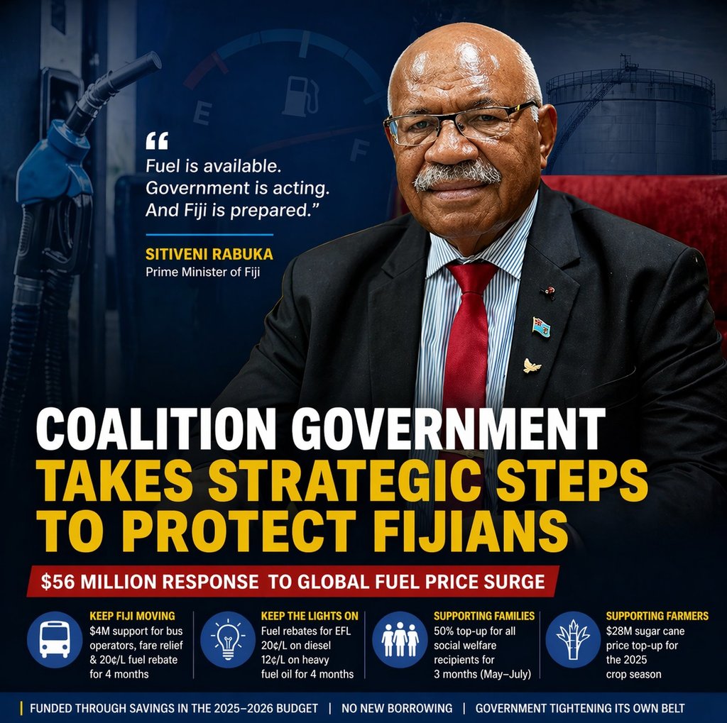 The Prime Minister emphasised that Fiji is not facing a fuel shortage, but a global price crisis driven by international conflict, supply disruptions, and rising costs in global markets.